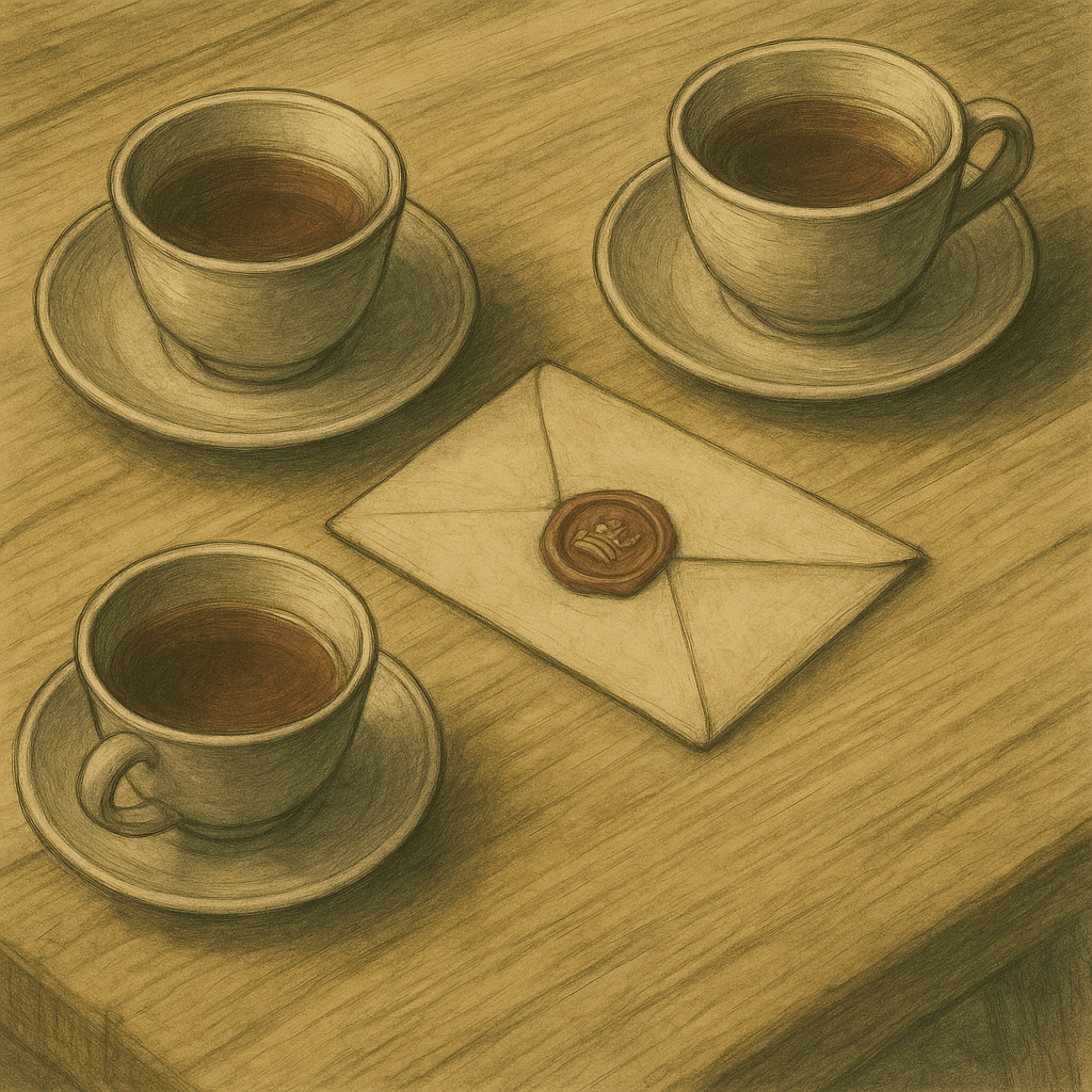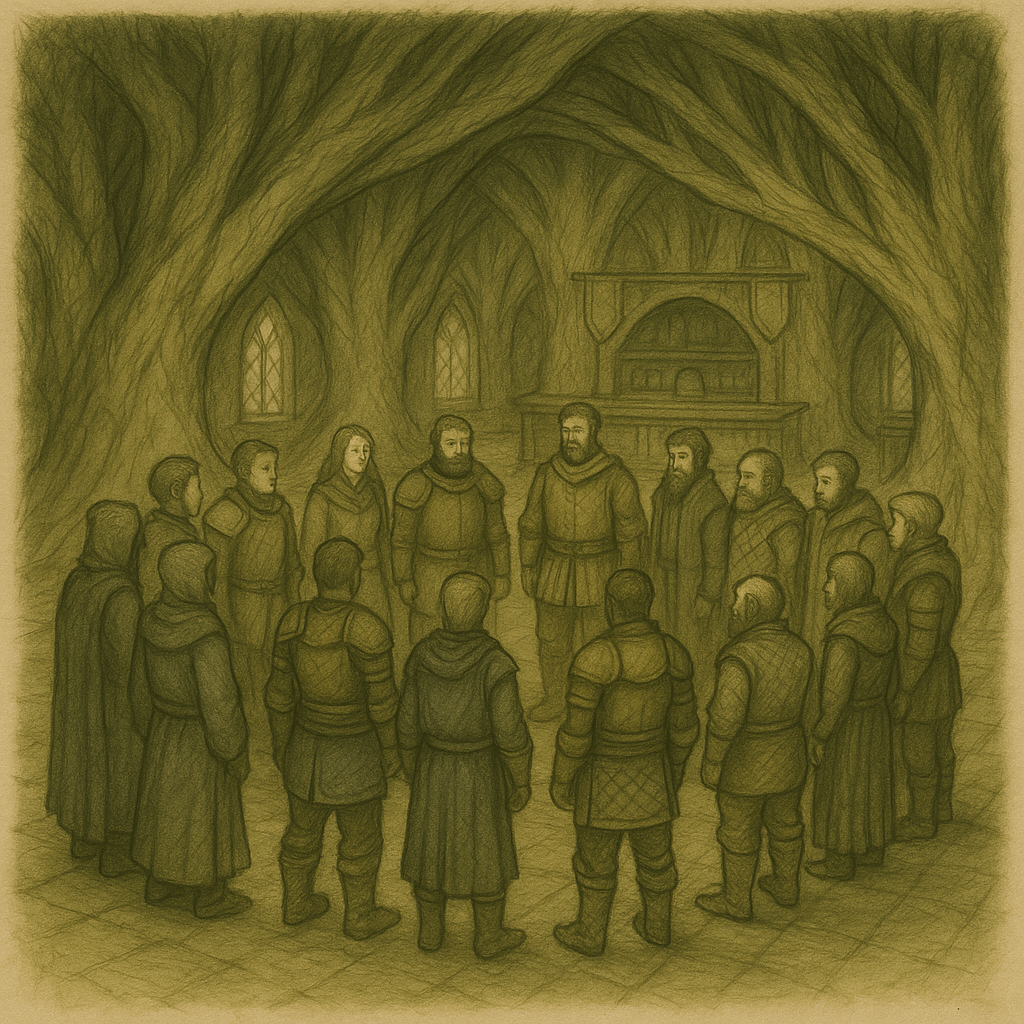 Los guardias se apartaron y los aventureros entraron en la casa. El interior estaba iluminado tenuemente por lámparas de aceite, y un aroma a hierbas secas llenaba el ambiente. Miriel los condujo hasta una mesa baja donde dispuso tazas de té.